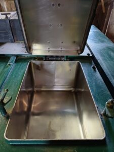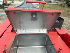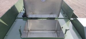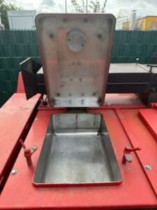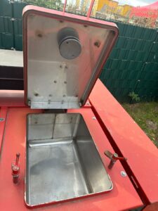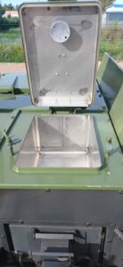 Feldkochherd FKÜ 120/88: Eine absolute Rarität unter den Feldküchen! Insgesamt wurden vom VEB NEGEMA nur 160 Stück hergestellt. Es handelt sich hier um die letzte Baureihe der ehemaligen NVA. Interessant dabei ist, dass die Küche mit Edelstahlkesseln ausgestattet ist, weiterhin im Gegensatz zur FKÜ 180/72 eine niedriges Bauweise und damit eine äußerst angenehme Arbeitshöhe hat. Der Feldkochherd läßt sich mit überschaubarem Aufwand mit einer Auflaufbremse nachrüsten und kann damit auch von einem PKW gezogen werden. Die Nachrüstung mit zugelassenen Gasbrennern ist leider nicht möglich.